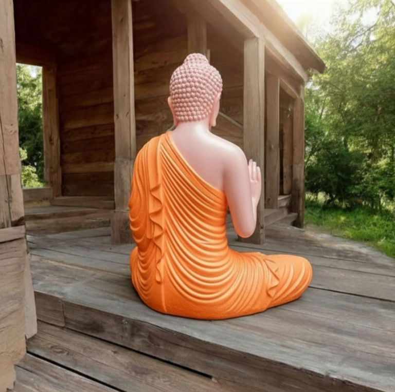 Exquisite 360-Degree Detailing: The intricate carvings and folds of the orange robe are meticulously detailed on both the front and the back.